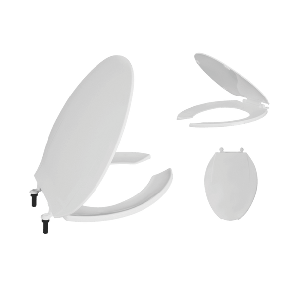 Adquiere el inigualable asiento para w.c. alargado de la marca VICAR. Polipropileno 100% virgen. Incluye bisagras y tuercas. Frente abierto